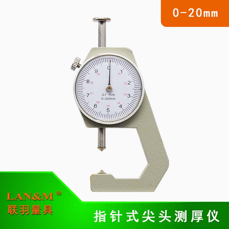 联羽指针式测厚仪 数显尖平头测厚规小型皮革布料厚度尺测厚仪 尖头0-20
