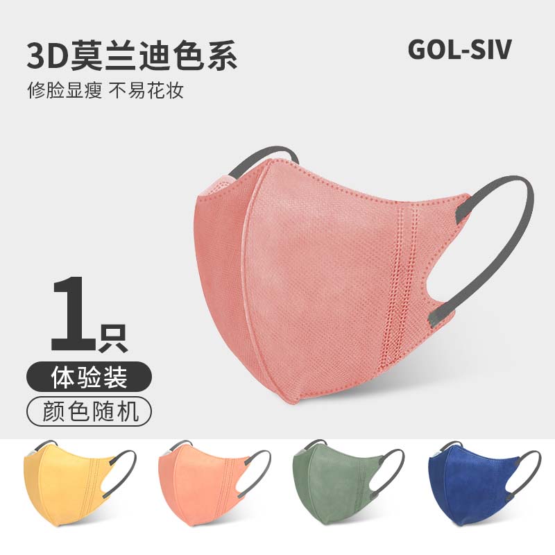 胜丽GOL-SIV莫兰迪3D立体口罩一次性成人男女款夏季轻薄透气潮流MLA30S马卡龙五色混装随机发货1只体验装凑单