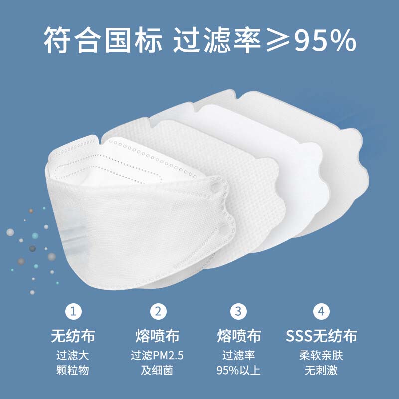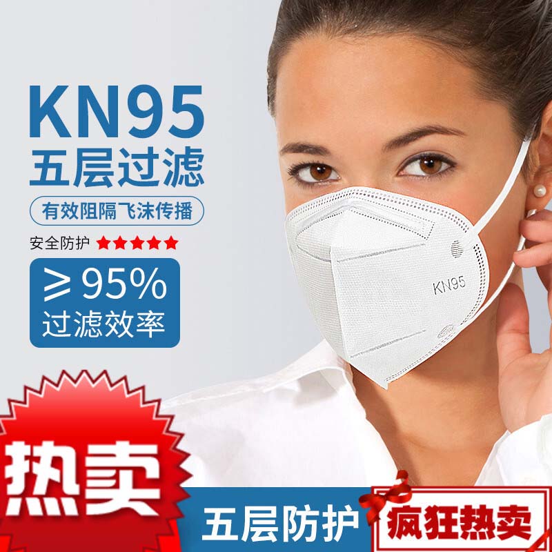 kn95囗罩防尘雾霾透气五层口鼻罩学生防护口罩熔喷布 kn95 无阀 【50片】内置鼻梁 独立装