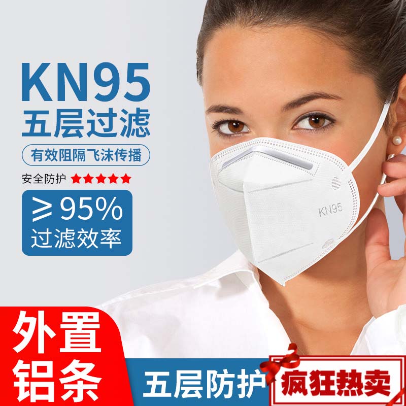 现货kn95囗罩防尘雾霾透气五层口鼻罩学生防护口罩熔喷布 kn95 无阀 【50片】内置鼻梁 独立装