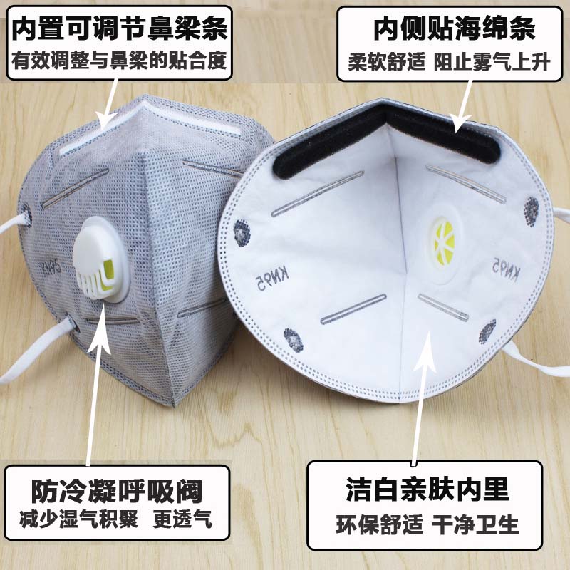 现货kn95囗罩防尘雾霾透气五层口鼻罩学生防护口罩熔喷布 kn95 有阀 【50片】独立装