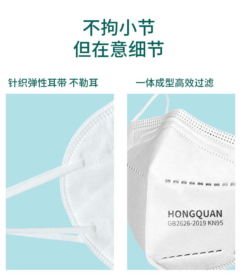 弘泉 囗 罩kn95口罩防尘透气防工业灰粉尘白色黑色立体学生成人防护防尘用品工地打磨n95型口罩 50只KN95级白色无阀【包邮无运费】