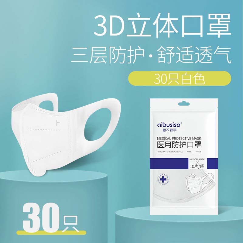 爱不释手 一次性3D立体防护口罩防雾霾防尘防飞沫三层含熔喷布黑色白色成人儿童口罩男女潮流 白色防护口罩100片【不挣钱套餐】