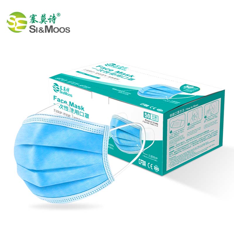 塞莫诗一次性口罩含熔喷层三层无纺布防尘透气 呼吸防护用正品 护理口罩50只
