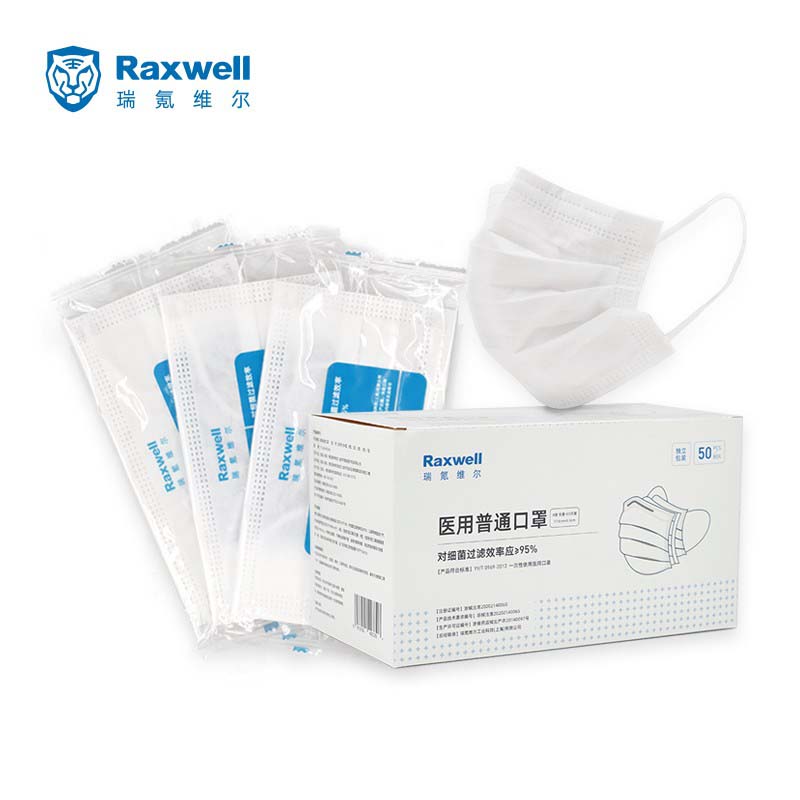 Raxwell一次性防护口罩独立装 白色 50片/盒 RX1921