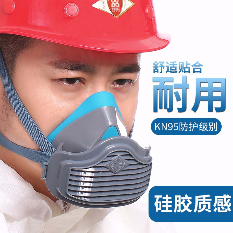 唐丰硅胶防尘口罩 工业粉尘 打磨装修 煤矿木工电焊打磨专业劳保可清洗防尘面具 防灰尘口罩 劳保面罩 1502蓝硅胶 口罩+20片KN95过滤棉