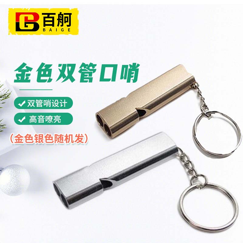 百舸 应急求生哨救生哨 口哨户外野营训练哨八哥玩具 宠物高频小哨子篮球裁判 金色双管口哨