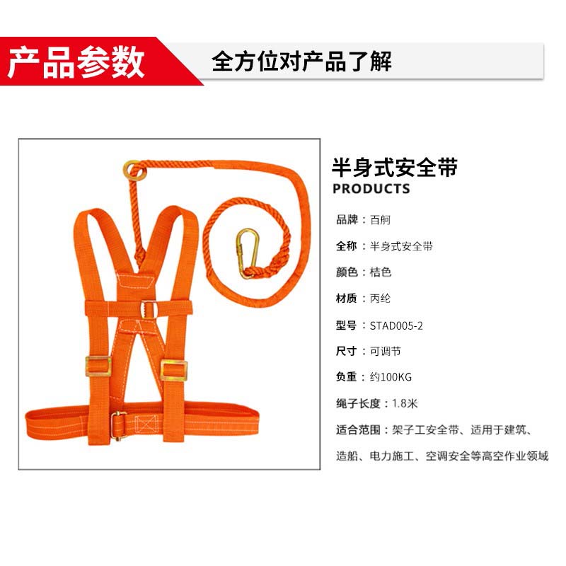 百舸高空作业防坠落安全带工地施工安全绳电工防护三点式半身式国标保险带腰带 单钩双背带式