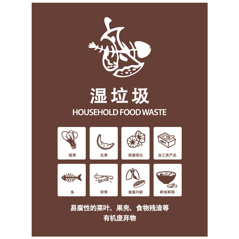 科力邦(Kelibang) 垃圾桶分类标识不干胶贴 上海干湿分类标签贴纸厨余有害标志贴20*30cm KBT002 湿垃圾