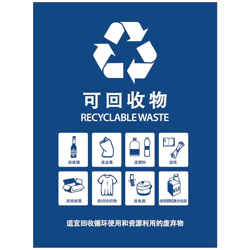科力邦(Kelibang) 垃圾桶分类标识不干胶贴 干湿分类标签贴纸厨余有害标志贴30*40cm KBT004 可回收