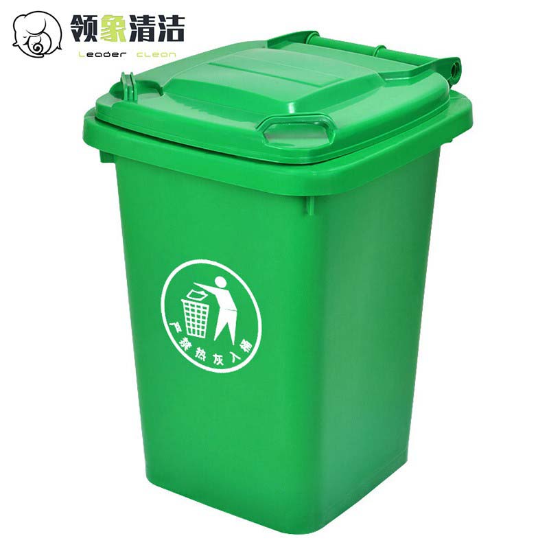 领象 大垃圾桶大号户外环卫加厚物业小区室外环保分类塑料带盖翻盖医疗垃圾桶箱酒店大号商用绿色50L(无轮款)
