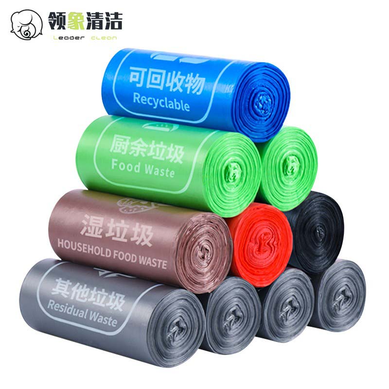 领象 100只5卷装 可降解垃圾分类手提式垃圾袋加厚医疗商用垃圾袋45*65厨余垃圾 绿色