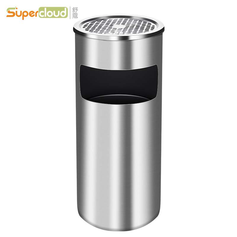 舒蔻 不锈钢垃圾桶带烟灰缸酒店大堂立式吸烟桶宾馆电梯口灭烟桶商场走廊烟灰柱 圆形 银色