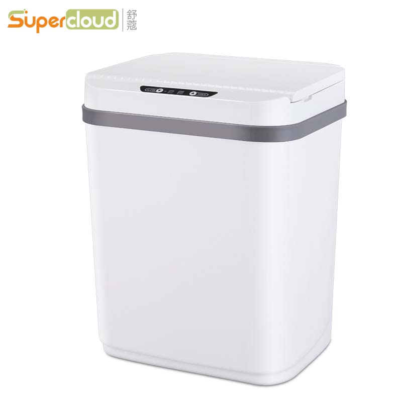 舒蔻(Supercloud)感应智能垃圾桶智能带盖自动感应厕所垃圾桶大号环卫 15L极地白