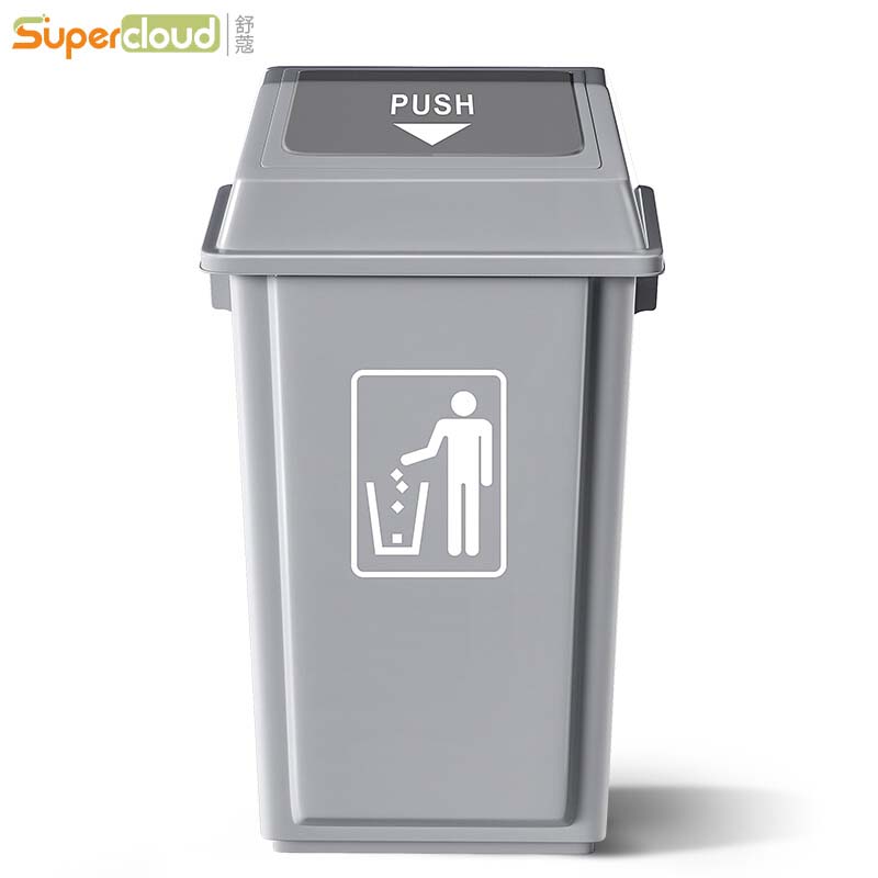 Supercloud(舒蔻)垃圾桶大号商用摇盖厨房餐饮学校物业果皮箱办公室厕所用翻盖垃圾箱 灰色100L