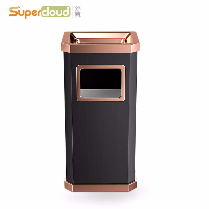 舒蔻酒店垃圾桶烟灰缸不锈钢大堂立式室外宾馆时尚带内桶走廊带烟灰缸垃圾桶 玫瑰金全黑靠墙式垃圾