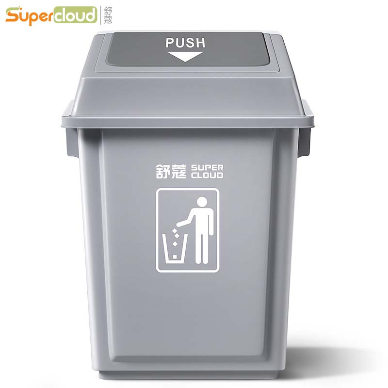 Supercloud(舒蔻)垃圾桶大号商用摇盖厨房餐饮学校物业果皮箱办公室厕所用翻盖垃圾箱 灰色42L