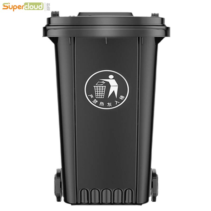 舒蔻(Supercloud) 垃圾桶大号户外带盖环卫带轮酒店商用小区物业塑料分类室外大容量垃圾箱 240L黑