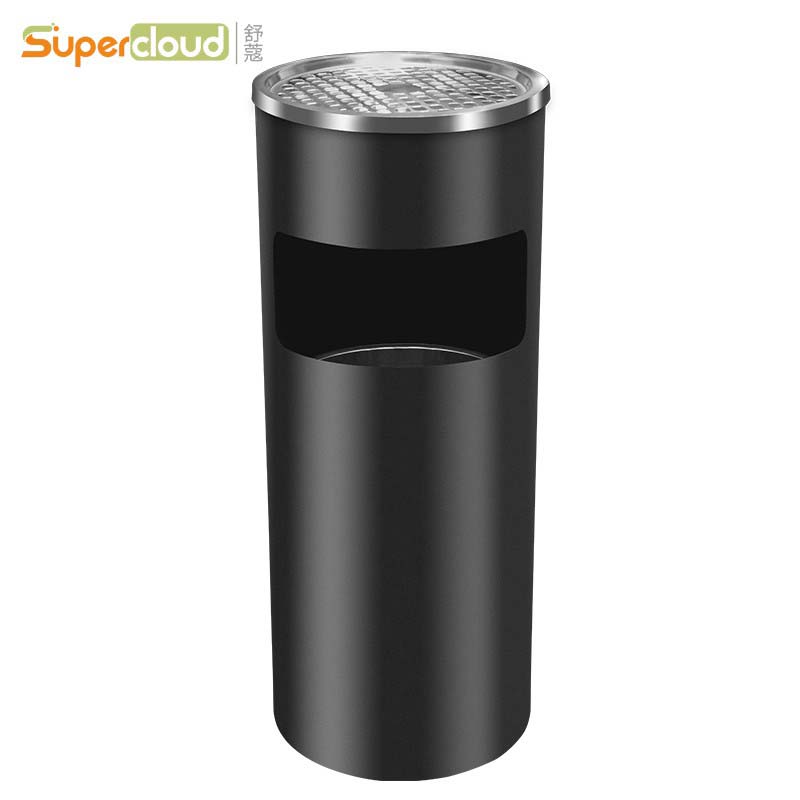 舒蔻酒店大堂不锈钢垃圾桶带烟灰缸宾馆立式烟灰桶电梯口走廊吸灰桶烟灰柱灭烟桶 圆柱桶【烤漆黑】