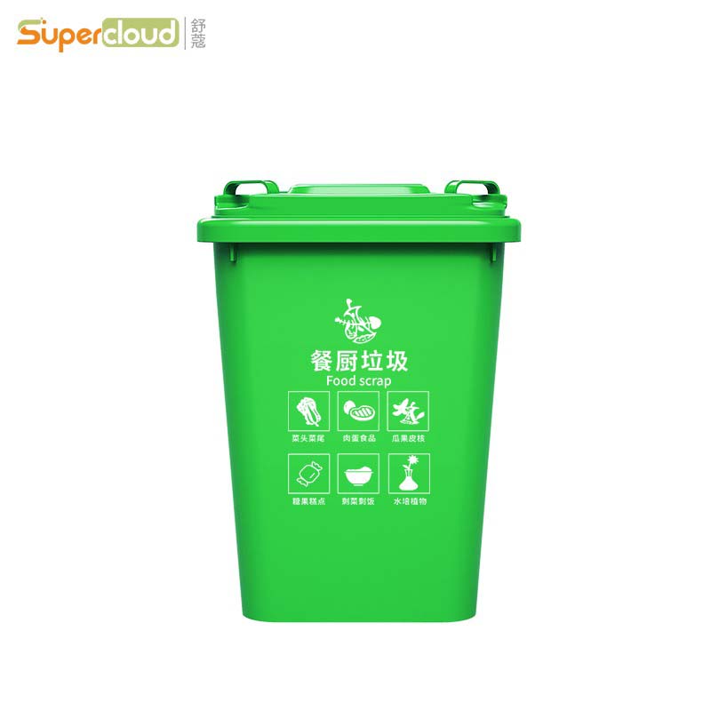 舒蔻(Supercloud)大号塑料分类垃圾桶小区环卫户外带盖加厚垃圾桶 50L加厚绿色分类厨余垃圾