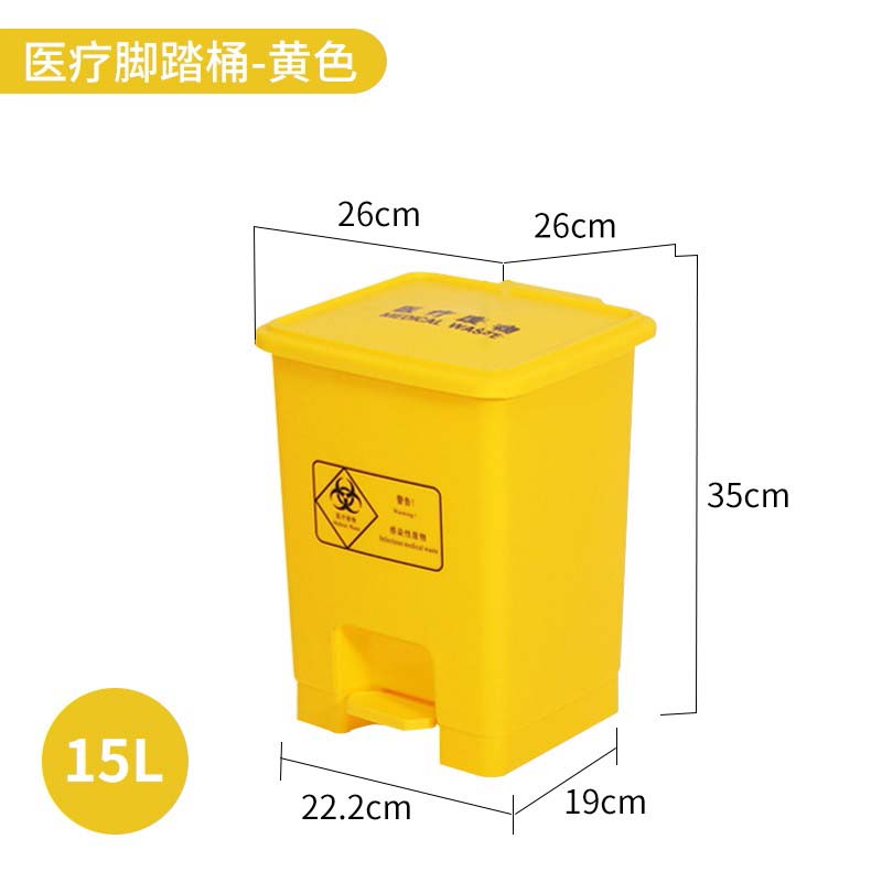 久洁医疗垃圾桶加厚黄色脚踩废弃口罩回收诊所医院用废物桶带盖脚踏款15L