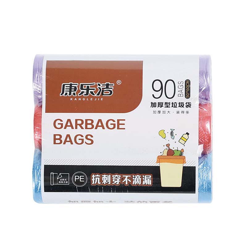 康乐洁 K-109 平口垃圾袋厨房办公室加厚一次性塑料袋 50*60cm 90只 颜色随机
