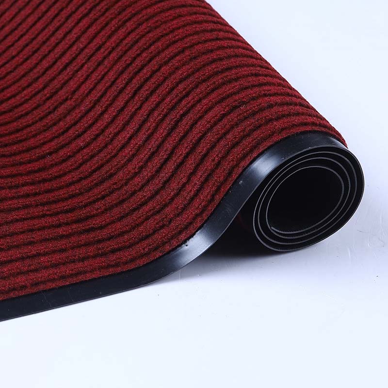 豫之韵 PVC双条纹地毯 酒店大门口迎宾防滑垫吸水脚垫楼梯走廊餐厅地垫商用塑料 酒红1.2米宽1米长
