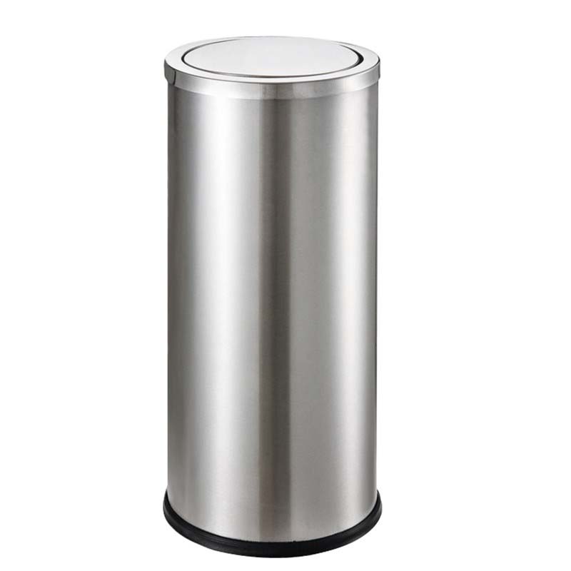兰诗 LAUTEE CY13 不锈钢垃圾桶 酒店商场电梯立式圆形桶果皮桶 翻盖款中号30*62
