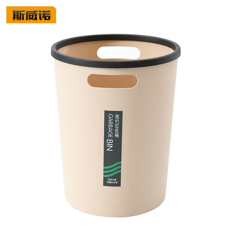 斯威诺 K-1203 小号压圈垃圾桶 酒店卫生间纸篓办公室简约提手垃圾篓 米色