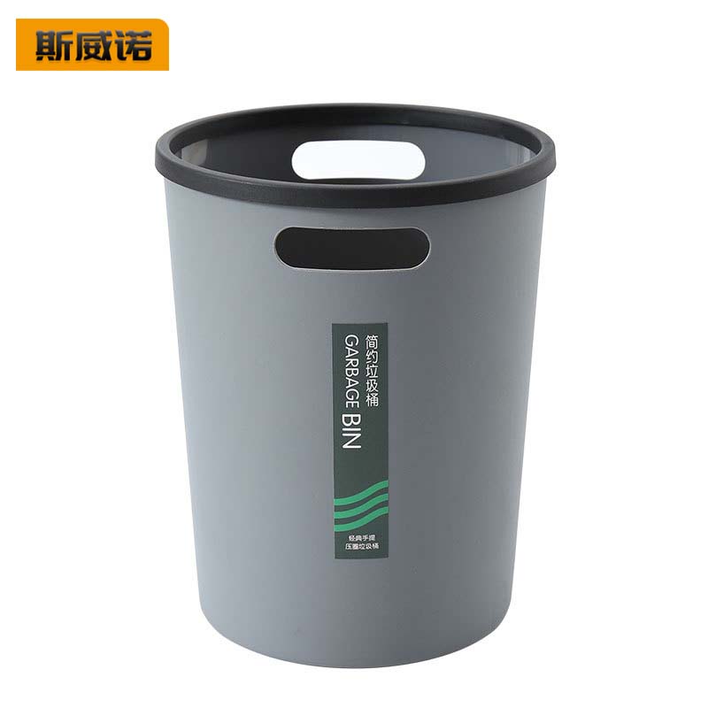 斯威诺 K-1206 大号压圈垃圾桶 酒店卫生间纸篓办公室简约提手垃圾篓 灰色