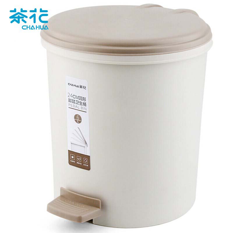 茶花垃圾桶带盖脚踏式6L厨房办公室塑料分类清洁收纳圆型废纸篓客厅卫生筒 1502