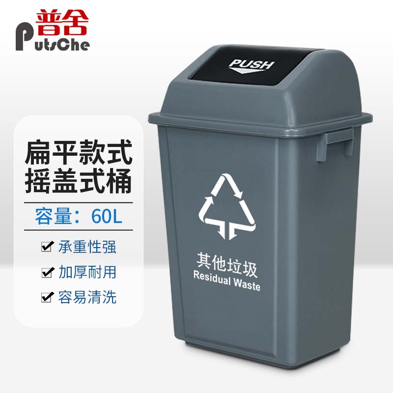 普舍(PUTSCHE)摇盖分类垃圾桶户外环卫厨房大容量带盖桶 灰色其他垃圾加厚摇盖60L