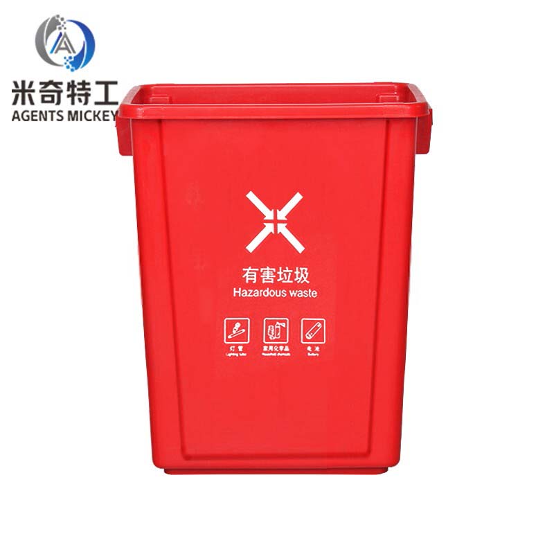 米奇特工(Agents mickey)无盖垃圾桶 大号厨房长方形工业塑料垃圾箱 红色(有害垃圾) 20L无盖