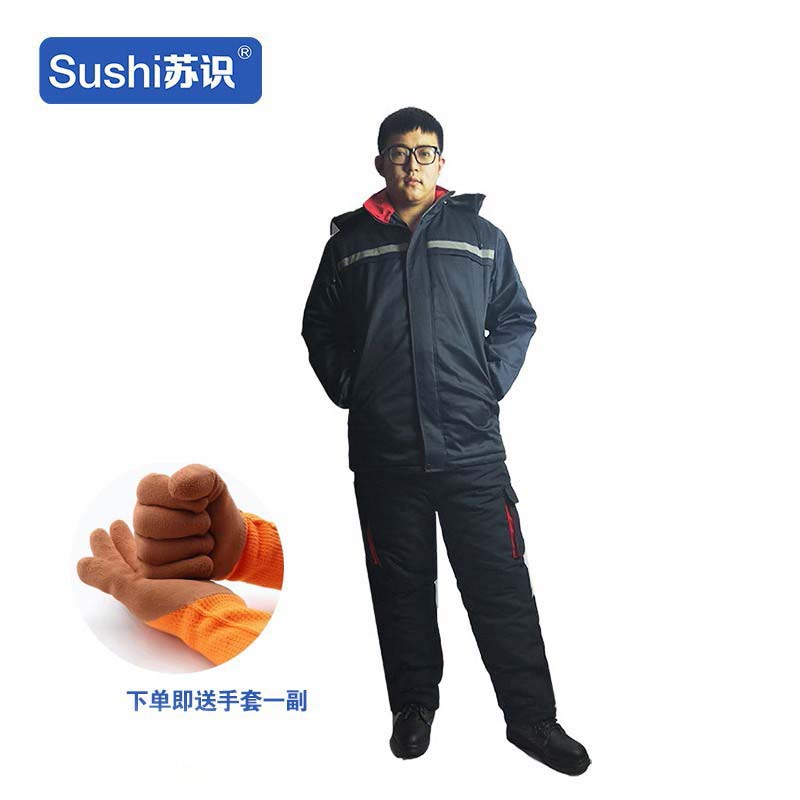 苏识 DJ0010 冬季加厚保暖工作服棉服套装劳保防寒服 3XL 深蓝色(套装)
