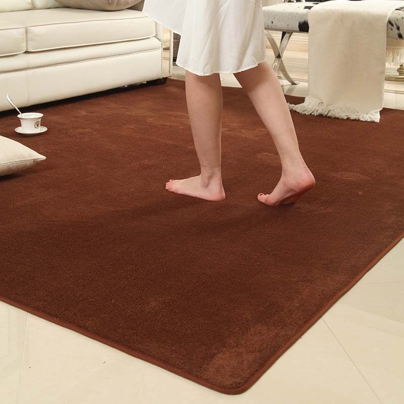 定制北欧短绒地毯卧室床边毯客厅地垫毛绒房间满铺儿童加厚简约 咖啡色 80x160cm