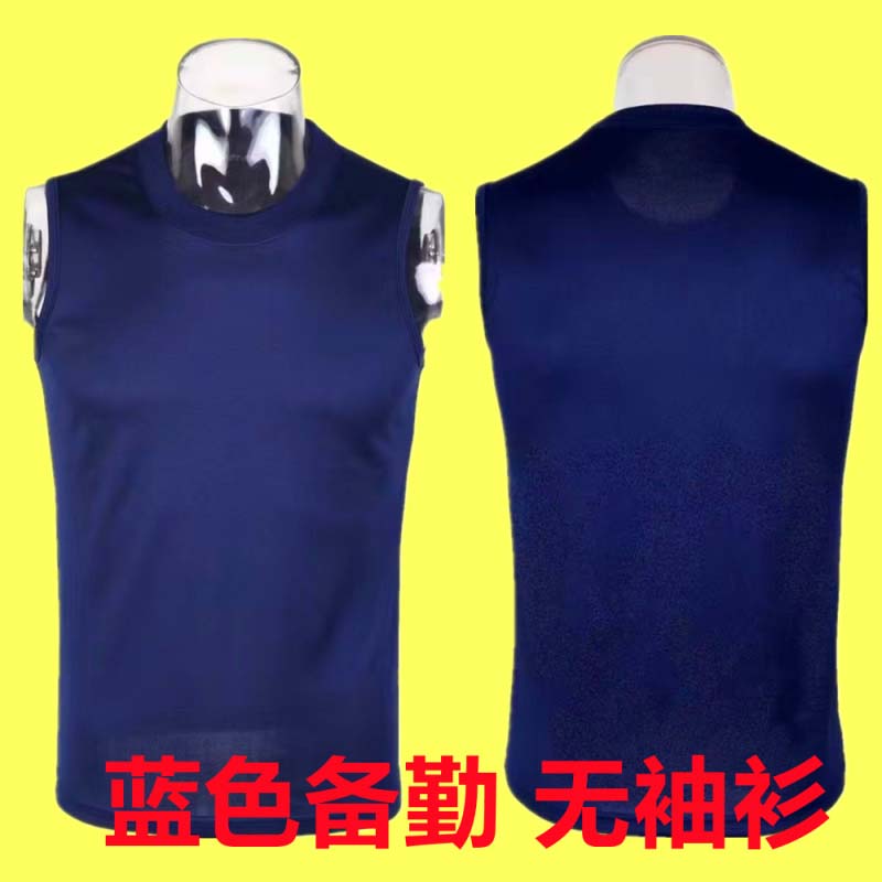 定制消防备勤无袖衫蓝色背心汗衫夏无袖体能训练服速干透气体能服 备勤蓝色背心 165-170/84-88