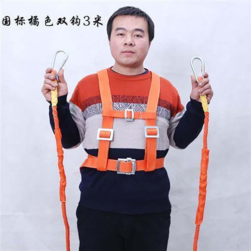 高空作业安全带 户外全身五点欧式保险带 双钩双挂钩安全带防坠落 缓冲包 建筑工作户外施定制 国标橘色双小钩3米