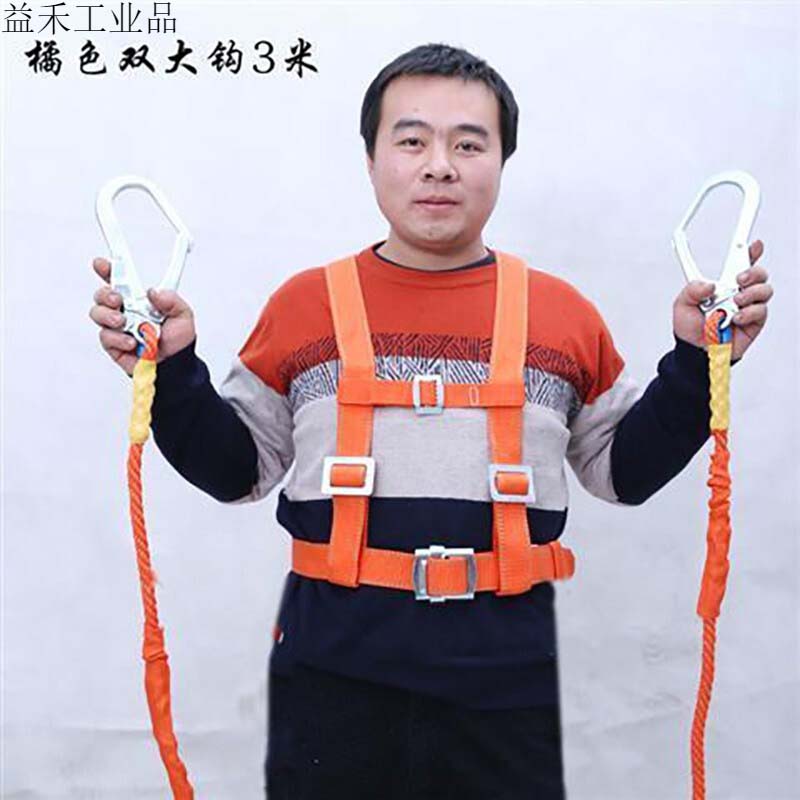 高空作业安全带 户外全身五点欧式保险带 双钩双挂钩安全带防坠落 缓冲包 建筑工作户外施定制 国标橘色双大钩3米
