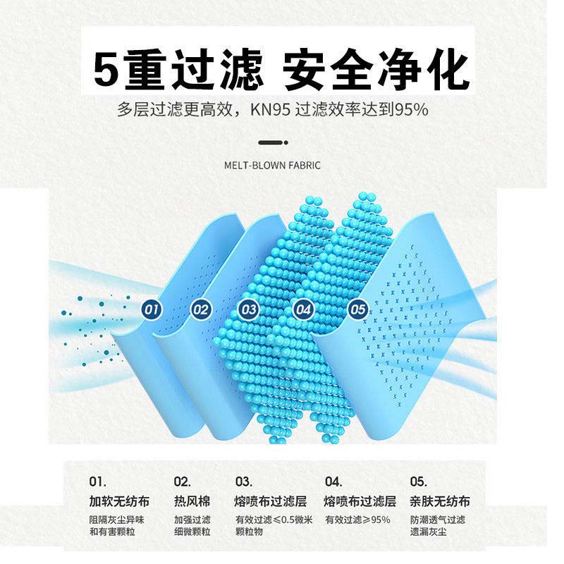 100只KN95口罩五层防护防尘成人一次性防病毒防飞沫口罩 【100只】五层KN95口罩