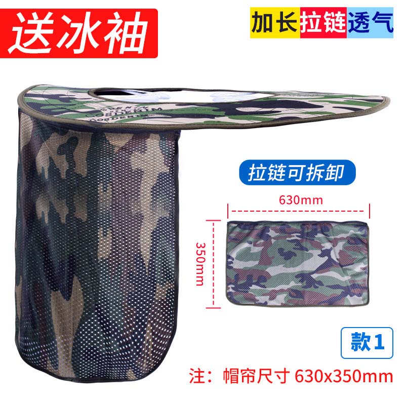 安全帽遮阳帽檐工地夏季防晒罩防护帽子沿加大帽圈布男女士可折叠防晒神器配套安全帽透气 【拉链折叠】迷彩款4【送冰袖】