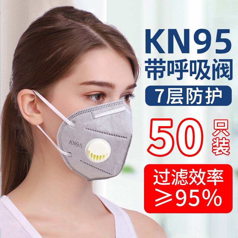 嘉柏兰 kn95防尘口罩透气工业粉尘灰工地打磨装修活性炭异味防护用品口罩 KN95灰色【50只装】7层防护含活性炭带呼吸阀