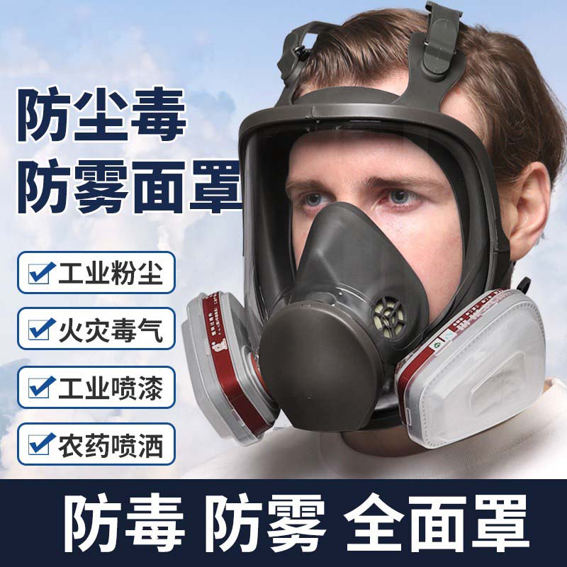 嘉柏兰 防毒面具全面罩防尘口罩全脸防护化工生化有毒气体喷漆打农药用防粉尘烟雾活性炭过滤式Kn95级 【全面罩七件套防毒面具】含高效滤棉活性炭滤盒