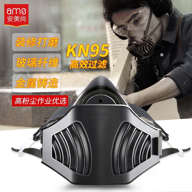 安美尚(ams) kn95防尘口罩白色工业粉尘防雾霾防飞沫颗粒防护口罩50只独立包装