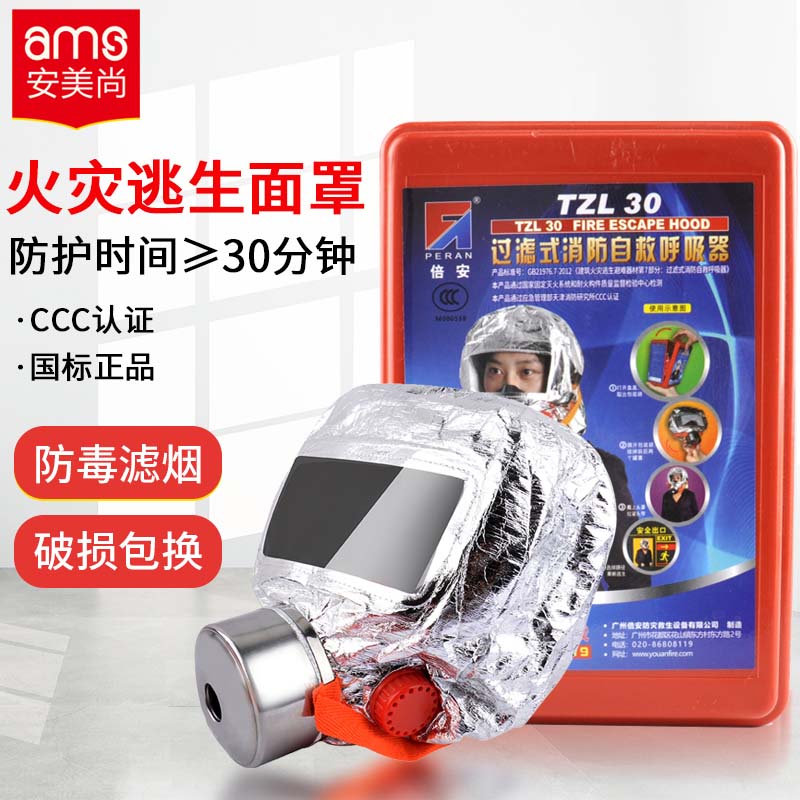 安美尚(ms)火灾逃生面罩TZL30过滤式消防自救呼吸器防火防烟面具酒店 1个 定做