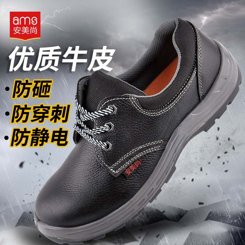 安美尚 ams 劳保鞋男防砸钢包头防静电防刺穿焊工工地牛皮安全鞋 防砸防静电防刺穿安全鞋(QA-669) 41码