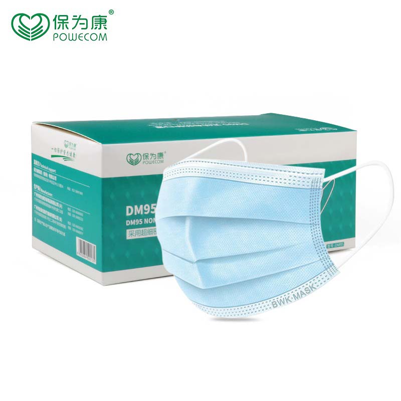 保为康 DM95一次性三层防护囗罩防飞沫尘雾霾花粉透气口罩 蓝色(2盒/100只)