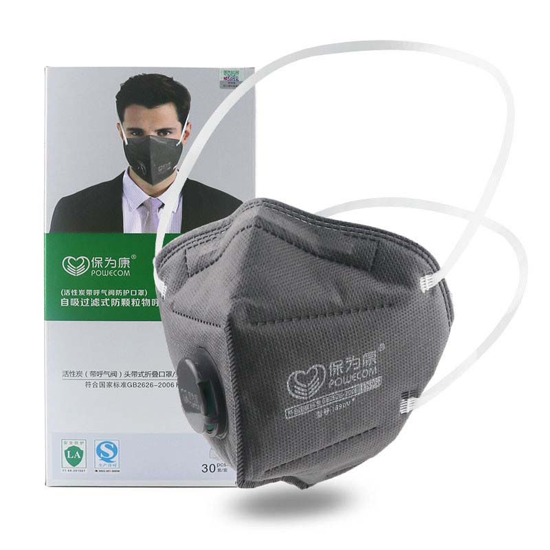 保为康 1866V带呼吸阀防尘活性炭口罩KN95防护口罩活性炭防尘防雾霾 1890V头带式(30只/盒)