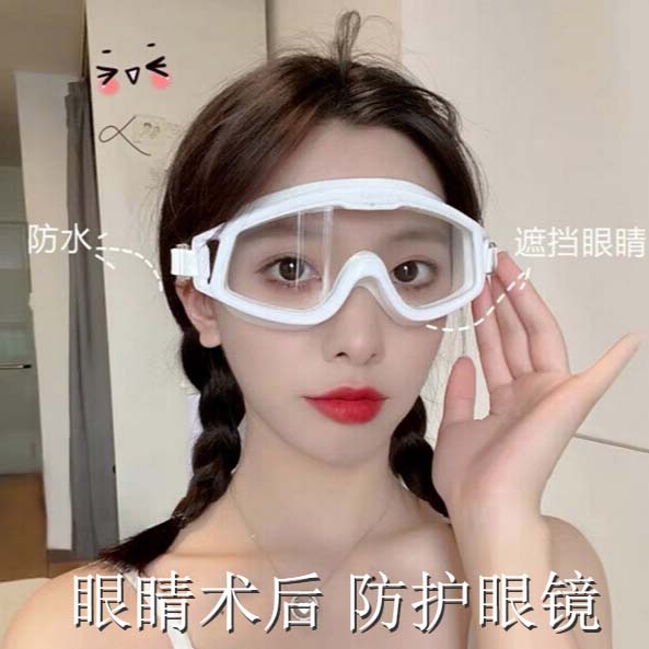 汐一全封闭防水护目镜男女飞秒手术后护目保护眼镜遮挡洗澡防眼睛进水神器白色款大镜框【透明防水】