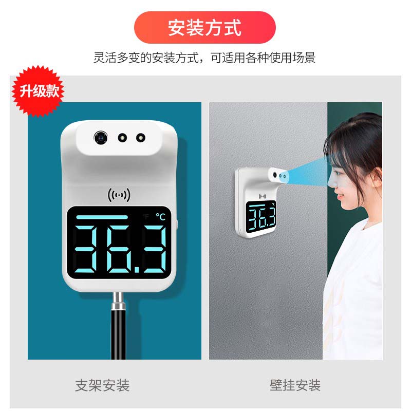 牧安宁 红外线测温仪立式人体自动感应测温枪非接触壁挂智能门口体温检测仪器高精准语音播报电子温度计 k3mini测温仪【语音播报+充电电池+高温报警】