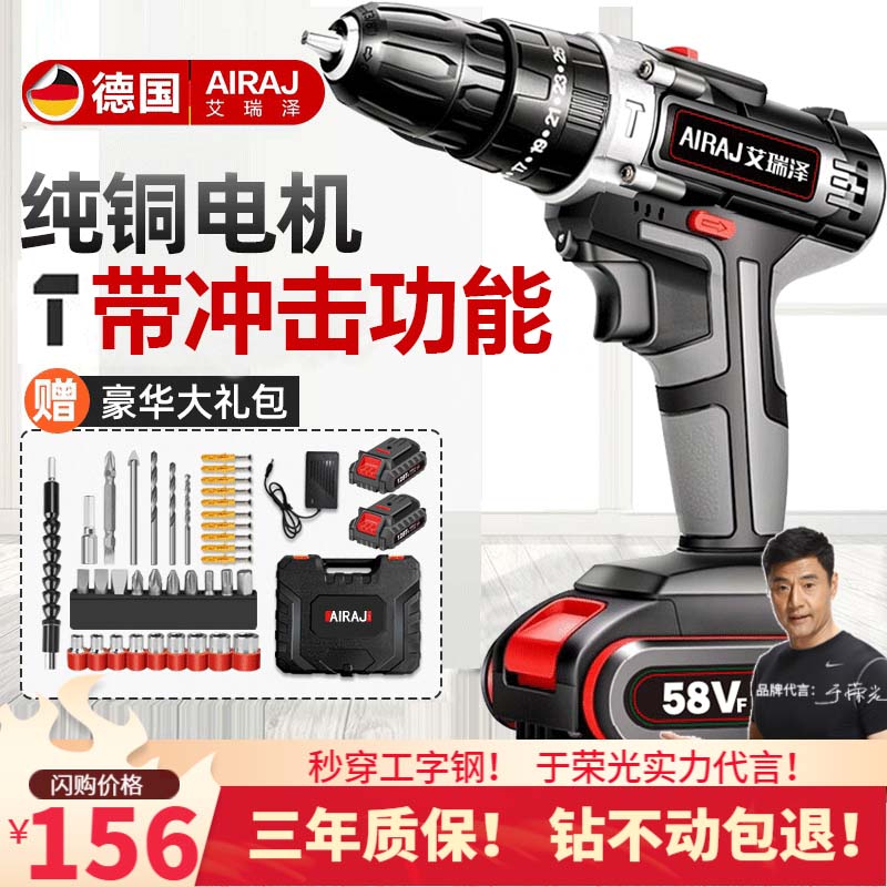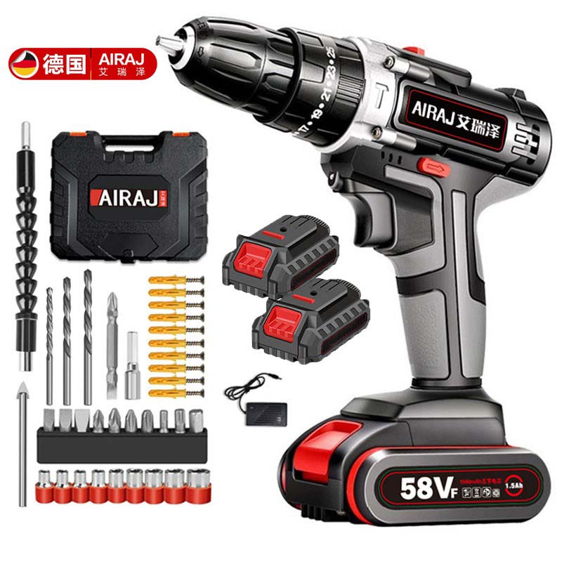 艾瑞泽冲击锂电钻 充电式手电钻家用冲击锂电钻多功能手钻电动螺丝刀 旗舰款58VF双速两电一充